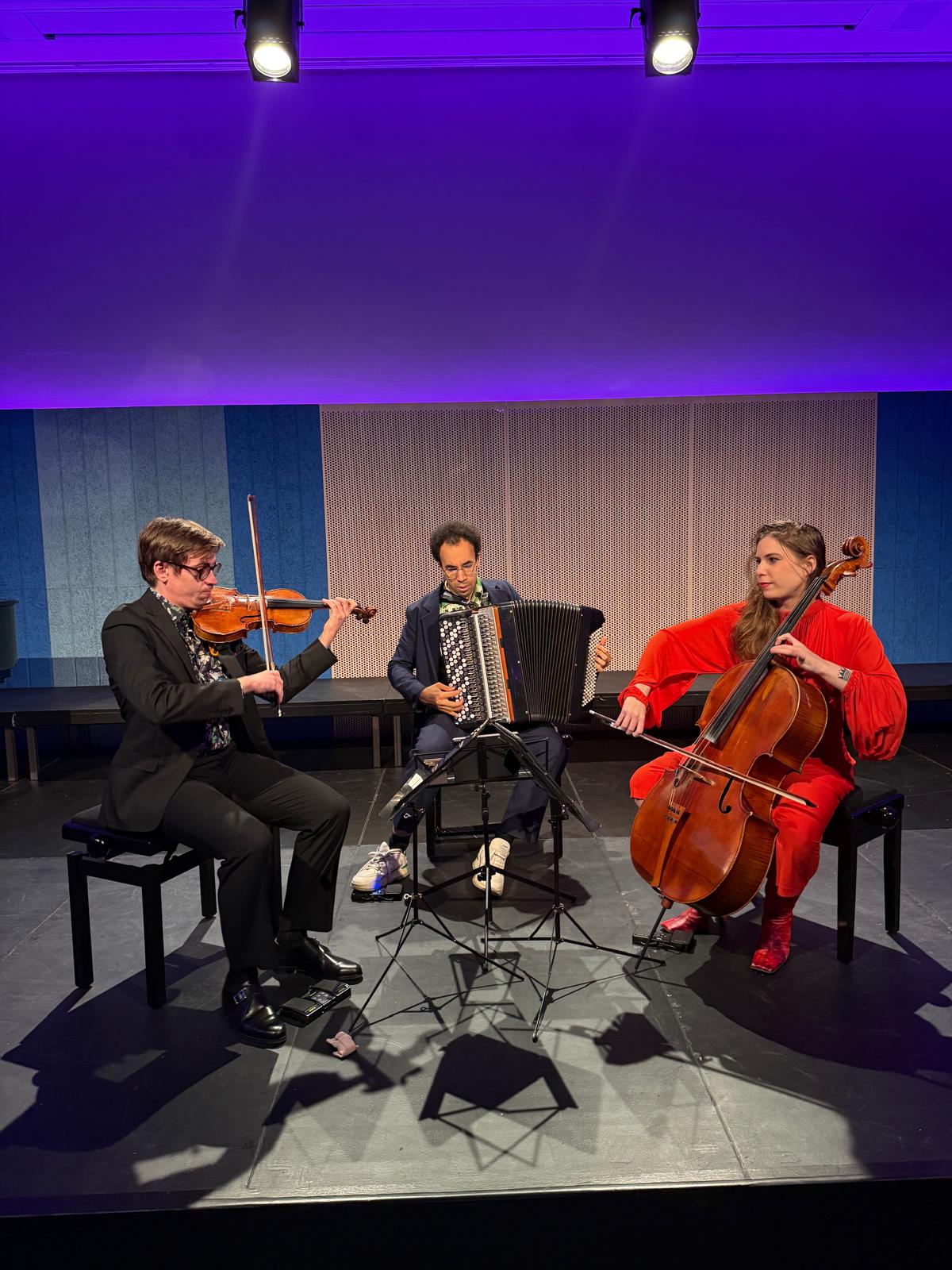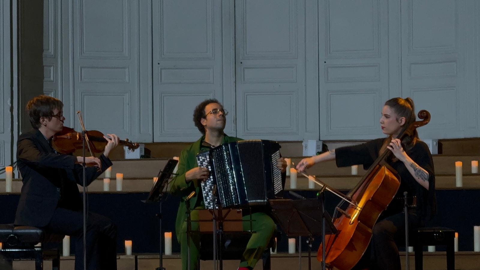 Fondé en 2018 sous l’impulsion de la violoncelliste Lisa Strauss et de l’accordéoniste Théo Ould, alors tous deux étudiants au Conservatoire de Paris, le Philia Trio défend une vision artistique résolument moderne. Après le succès de leur premier album Madness paru en 2022 chez le label du Festival d’Auvers-sur-Oise DiscAuvers, les deux musiciens sont rejoints par le violoniste Pierre Liscia-Beaurenaut. L’ensemble défend un répertoire éclectique, du baroque au contemporain, de Marin Marais à Arvo Pärt, le tout réuni dans l’alliage étonnant du violon, du violoncelle et de l’accordéon.